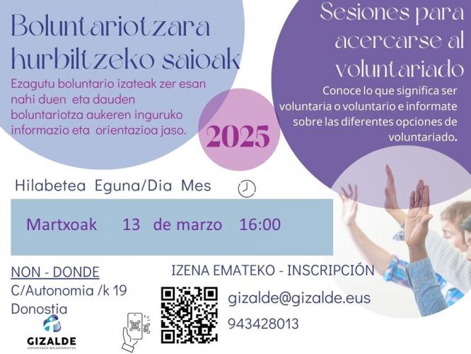 Saioen helburua boluntario izateak zer esan nahi duen argitu eta egon daiztezkeen aukerei buruz orientazioa ematea da.