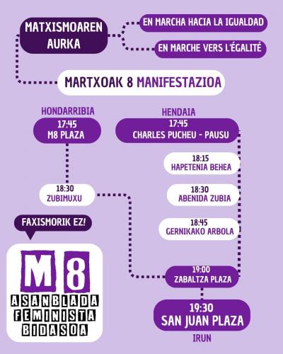 Beraz, ezinbestekoa da, berriro ere, manifestatzea, kaleak, espazio publikoa okupatzea.Funtsezkoa da emazteek gizonen eskubide berberak izan behar dituztela berrestea eta bidegabekeria egoera guztiak salatzea.
