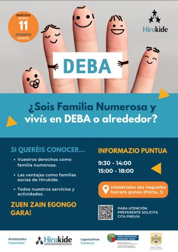 Martxoaren 11an, asteartea, Hirukide Euskadiko Familia Ugarien Federazioak aurkezpen bat egingo die Debako eta inguruko udalerrietako familia ugariei.