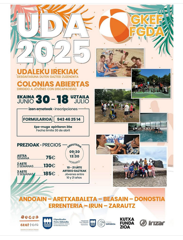 Aurten ere, GKEFtik desgaitasuna duten haur eta gazteentzat aisialdirako jarduera-programa atsegin, seguru, dibertigarri eta osasungarri bat eskaini nahi da gipuzkoako udalerri ezberdinetan. Helburua, uda garaian lagun-taldean eta batez ere aire zabalerako programatuko diren kirol eta kultur-jarduera ezberdinak esperimentatzea izango da, tokian-tokiko taldearen ezaugarriei egokituta eta inguruneak dituen aukeren arabera.
