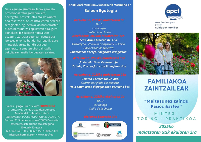 APCF elkarteak "Familiakoa Zaintzaileak - Maitasunez zaindu pasioz ikastea" mintegi teoriko-praktikoa antolatu du.