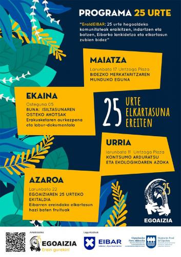 Urteurren berezia ospatzen ari gara! 2025 honetan, 25 urte elkartasuna ereiten betetzen ditugu Eibarren eta harago. Urte osoan zehar, ospakizun bereziak izango ditugu gure ibilbide kolektibo hau gogoratzeko: konpromisoduna, bidezko eta solidarioa.