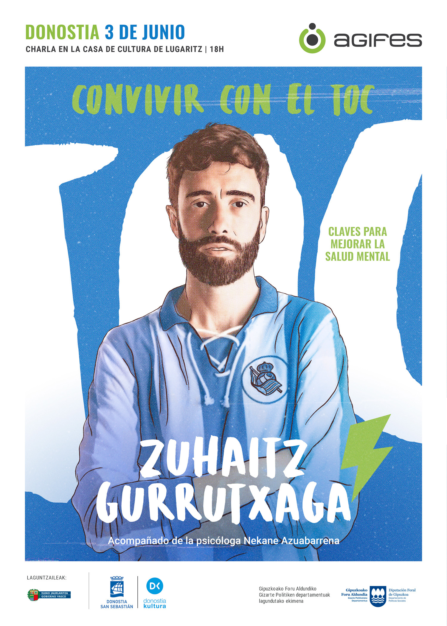 Zuhaitz Gurrutxaga futbolari ohi eta umoristak nahasmendu obsesibo-konpultsiboarekin bizitako esperientziak partekatuko ditu ekainaren 3an Donostian. Lehen Mailako jokalari gisa eman zituen urteetatik hasi eta gaurdaino, bakarrizketagile eta aktore gisa egin duen bidea jorratuz, Zuhaitzek buru nahasmenduak bere bizitza pertsonal eta profesionalean izan duen eragina azalduko du, bere estilo hurbil eta dibertigarriarekin. Agifesek antolatutako topaket