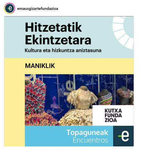 MANIKLIK arte eta gizarte erakusketa bat da, berrerabilitako ehun-hondakinekin egindako sei sorkuntza biltzen dituena. Pieza horiek Emaus Gizarte Fundazioak Munton kudeatzen dituen foru eskumeneko gizarte zerbitzuetako erabiltzaileek sortutako hamaika manikiko multzo baten parte dira.