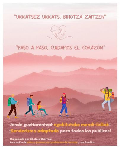 5km-ko ibilbidea egingo dugu, paseoaz eta bistetaz gozatzeaz gain, une ezin hobea da familiek, kardiopatia duten pertsonek, bai eta animatzen den edonork, elkarrekin hitzegin eta gauzak konpartitzeko.