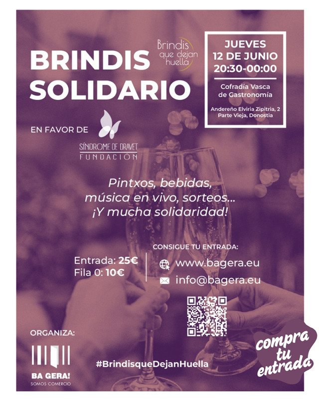Ekainaren 12an hitzordu berezia dugu Euskal Gastronomia Kofradian, Parte Zaharrean bertan: Ba geraren Brindis Solidarioa. Jasotako guztia Fundacion Sindrome de Dravet elkarterako izango da, haurren gaixotasun neurologiko hau duten familiei laguntzeko.