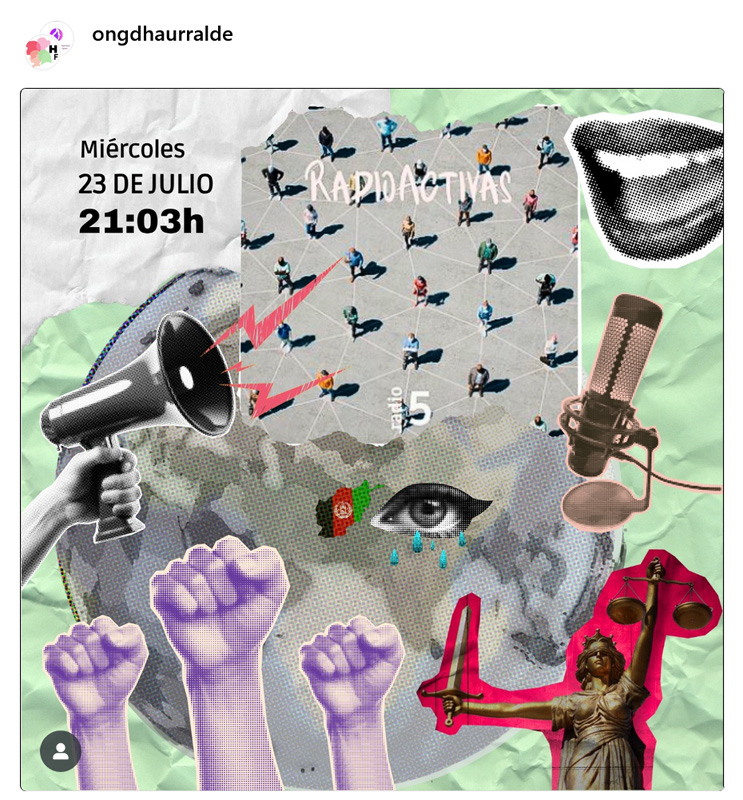 Uztailaren 23an, asteazkena, 21:03etan, Afganistango Emakumeen eta Nesken Giza Eskubideen Aldeko Plataformak bere ekimena aurkeztuko du Radio 5 irratiko RadioActivas saioan, Lola Martínez Rojok gidatuta.