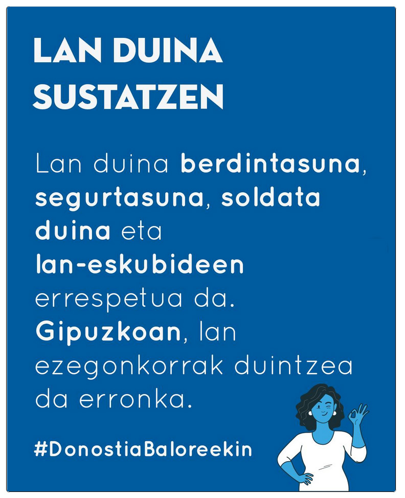 Gipuzkoan eta Donostian, erronka nagusietako bat da prekarietatea murriztea sektore batzuetan (zerbitzuak, zaintza, gazteria, migratzaileak) eta bizi-proiektu duinak ahalbidetuko dituzten enpleguak bermatzea.