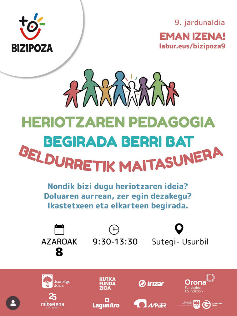 Bizipoza Elkarteak bere Jardunaldien 9. edizioa antolatu du. Aurtengo gaiak: "Heriotzaren Pedagogia: Begirada berri bat beldurretik maitasunera".