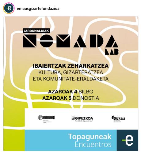 Bi eguneko NomadaLab jardunaldiekin abiatuko da jaialdia, sorkuntza, parte-hartzea eta kulturarako sarbidearen inguruan elkarrizketatu eta hausnartzeko.
