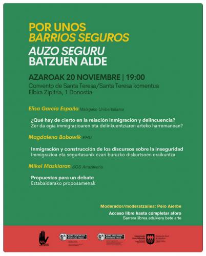 Segurtasuna, elkarbizitzaren oinarrizko elementua, gaurkotasun handiko gaia da. SOS Arrazakeriatik uste dugu beharrezkoa dela eztabaida zabal bat egitea, inplikatutako sektore guztien parte-hartzearekin. Datorren azaroaren 20an, adituen iritzia jasoko dugu, eta gure ustez aurrera egiten lagunduko liguketen proposamenak ezagutaraziko ditugu.