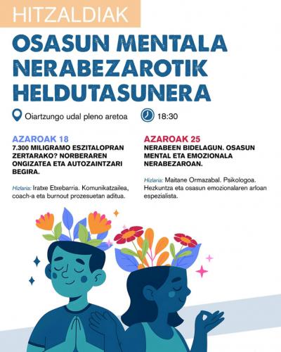 Arraztalo Elkarteak Maitane Ormazabalek eskainiko duen "Osasun mentala nerabezaroatik heldutasunera" hitzaldia antolatu du.