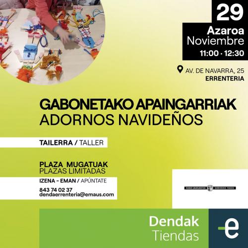 Gabonetako apaingarriak etxean egiteko asmotan? 6-10 urte bitarteko haurrentzako sormen tailer bereziak antolatu ditugu Hernaniko eta Errenteriako Emaus Gizarte Fundazioko dendetan.