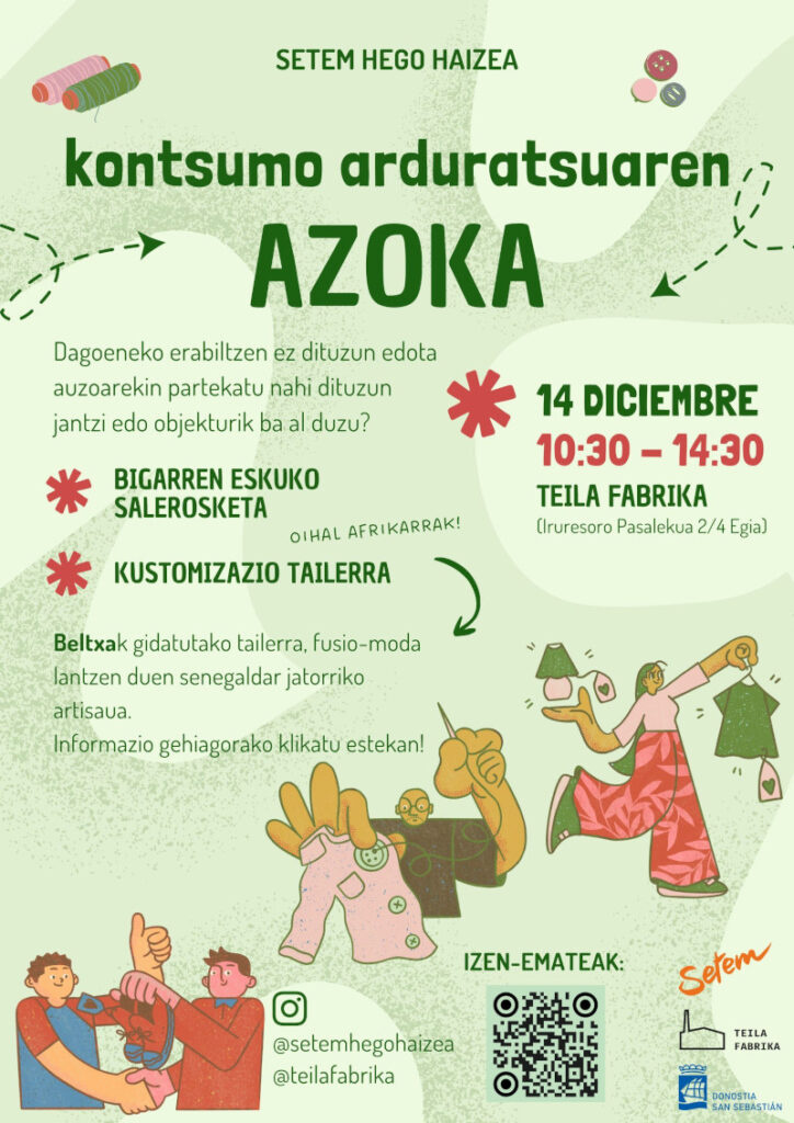 Abenduaren 14an, igandea, SETEM Hego Haizeak, Teila Fabrikarekin batera, kontsumo arduratsuaren azoka antolatu du Egia auzoan.