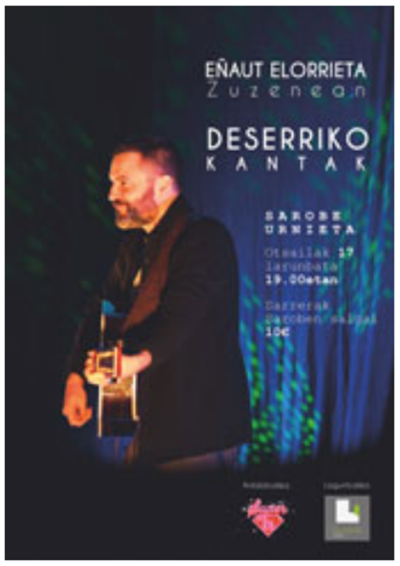 Eñaut Elorrieta presentará un concierto acústico:"DESERRIKO KANTAK".