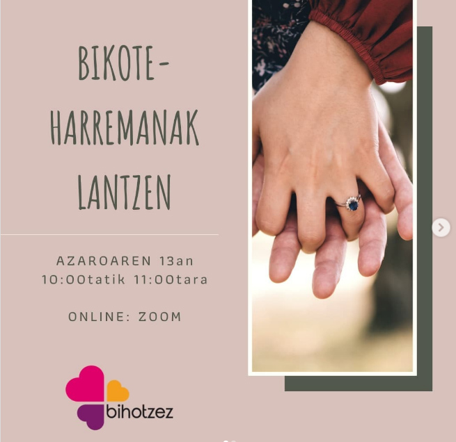 Bihotzez elkarteak "Bikote-harremanak lantzen" online tailerra antolatzen du.