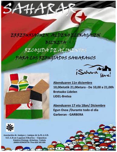 La Asociación de Amigos y Amigas de la R.A.S.D. organiza en Donostia una recogida de alimentos para las personas refugiadas saharauis.
