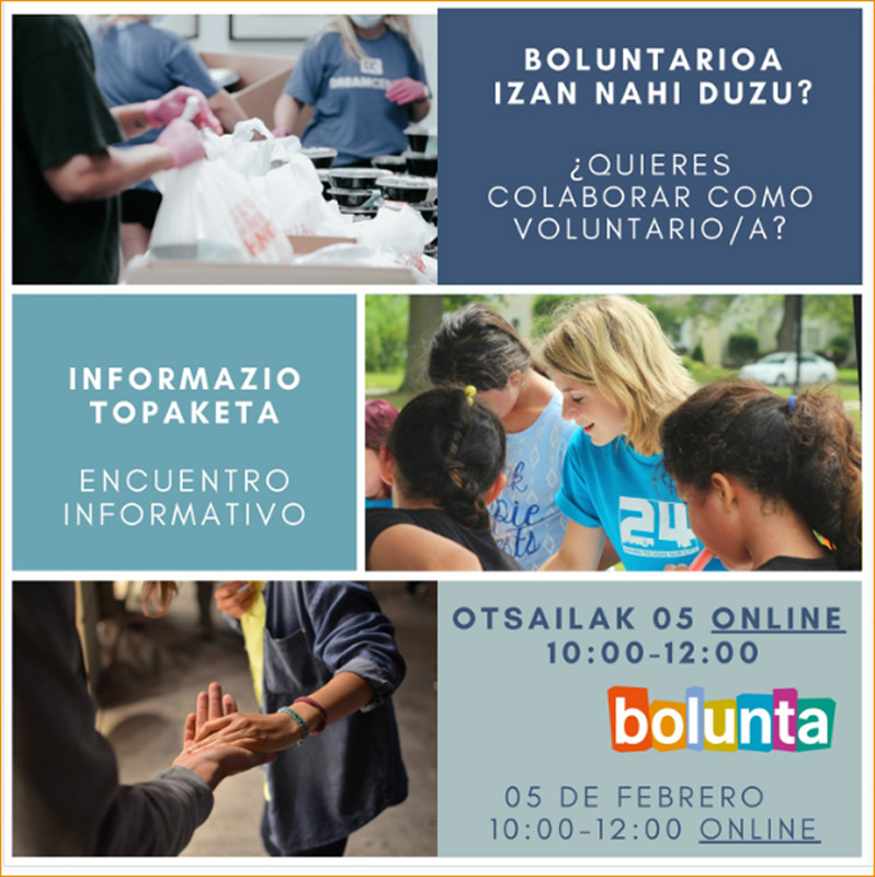 Boluntarioak izan nahi duten pertsonen arteko topaketa da. Boluntariotza zer den azaltzea dute helburu, baita zuon kezka eta profilei hoberen datorkien eginkizunez eta erakundeez orientatzea ere.