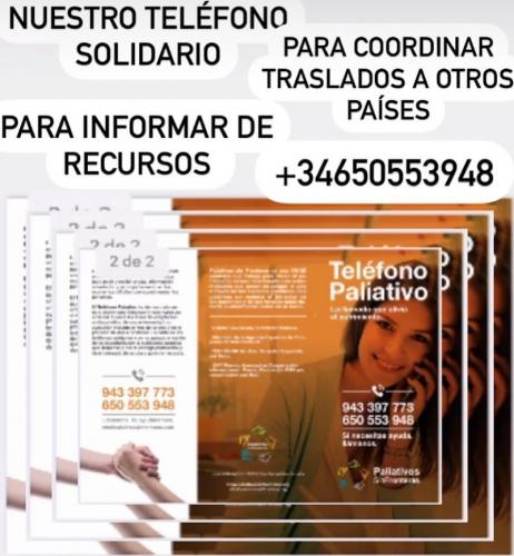 Teléfono Solidario (943 397 773) y de Información de Recursos (+34 650553948) de la asociación Paliativos Sin Fronteras.