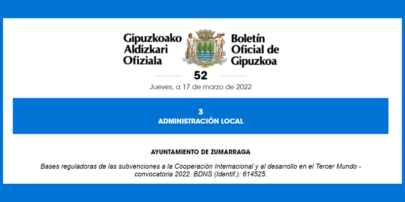 Nazioarteko lankidetzarako eta hirugarren munduaren garapenerako dirulaguntzen 2022ko deialdia.