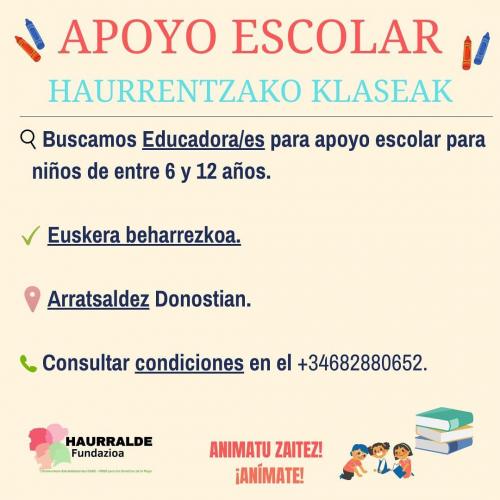 En Haurralde Fundazioa buscamos educadoras y educadores para apoyo escolar infantil.