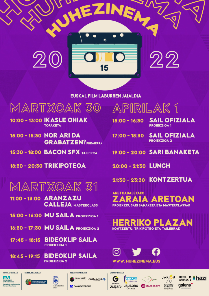 La Facultad de Humanidades y Ciencias de la Educación de Mondragon Unibertsitatea, HUHEZI, creó en 2008 el Festival de Cortometrajes Vascos HUHEZINEMA. Desde entonces, dentro de la propuesta de trabajo "organización de eventos culturales", los alumnos de 4º curso del Grado de Comunicación Audiovisual organizan el festival que se ha convertido en referente.