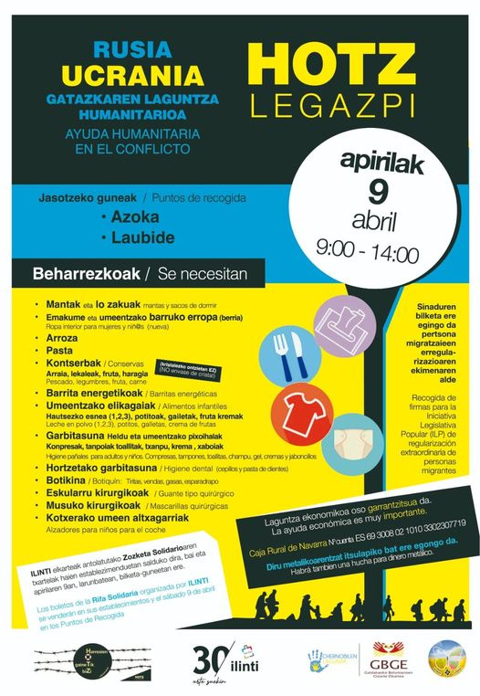 Apirilak 9. Elkartasun eta bilketa Eguna UKRANIARA BIDALTZEKO