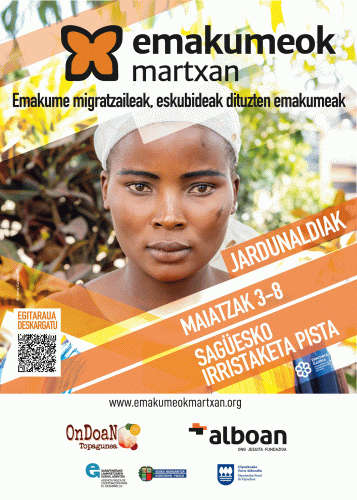 Joan den martxoaz geroztik, “Emakume migratzaileak, eskubideak dituzten emakumeak” proposamena daramagu Euskadiko hainbat hiritara, emakume migratzaileek eta migratuek bizi dituzten errealitateak, jatorritik helmugara iritsi arte, ikustarazteko nahian. Ekimen hau Emakumeok Martxan proiektuaren barruan kokatzen da, eta migrazio-prozesuaren fase guztietan jasaten dituzten eskubideen urraketak , diskriminazioak eta indarkeriak salatu nahi ditu. Publikoari irekitako espazioak dira, partekatzeko,