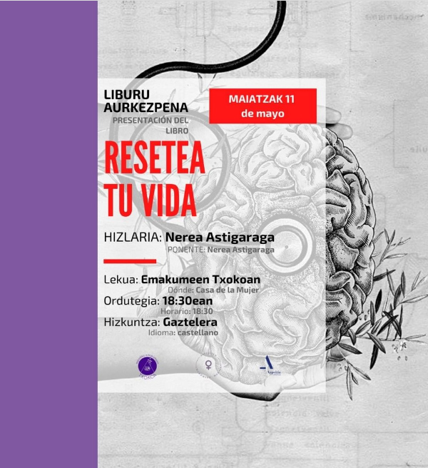 Contaremos con la presencia de la psicóloga Nerea Astigarraga en Emakumeen Txokoa, que presenta su libro "Resetea tu vida".