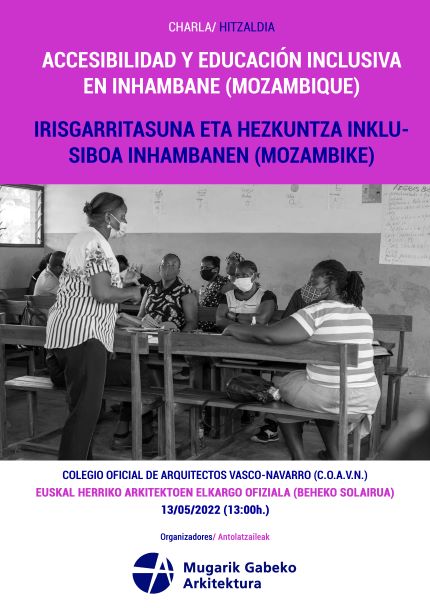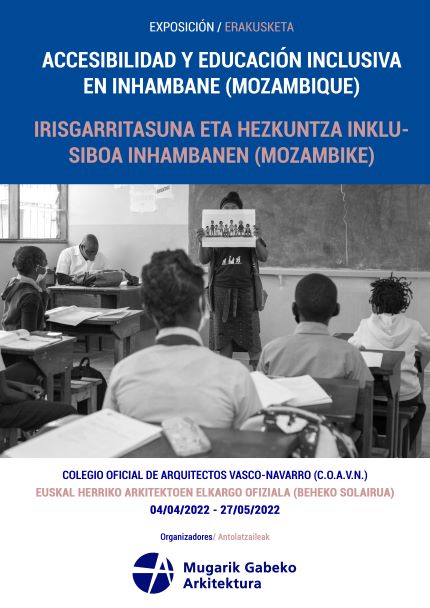 La asociación Arquitectura Sin Frontera - Euskadi presenta en la Escuela de Arquitectura de Donostia la exposición "Accesibilidad Y Educación Inclusiva En Inhambane" sobre el proyecto que realizamos sobre accesibilidad y educación inclusiva en Inhambane, Mozambique.