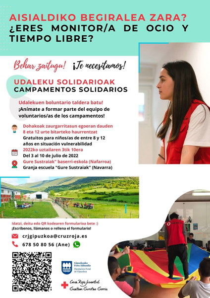 Gurutze Gorriak uztailean antolatu dituen Udaleku Solidarioetarako begiraleak behar ditu.