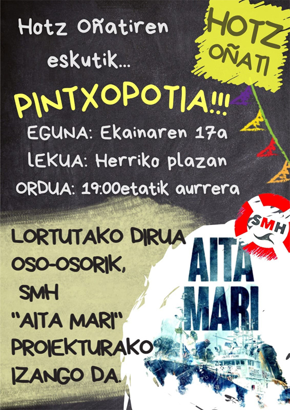 Datorren ekainaren 17an Oñatiko Herriko Plazan Elkartasun Pintxopotia!!