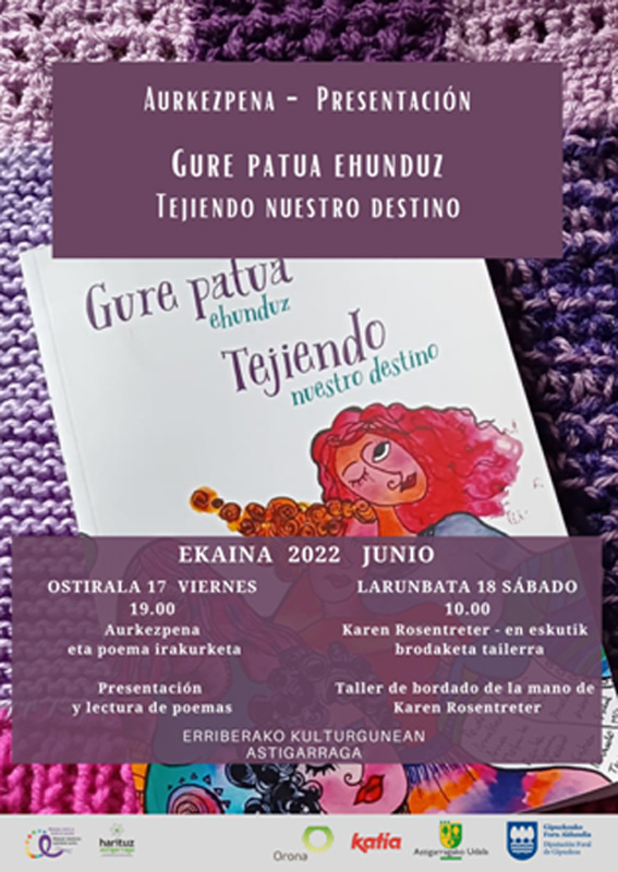Hurrengo ekainaren 17an, Indarkeria Sexistaren Aurkako Matazak mugimenduak "Gure Patua Ehunduz" poesía eta ilustrazio liburua aurkeztuko du Astigarragako Erribera Kulturgunean, 19tan.