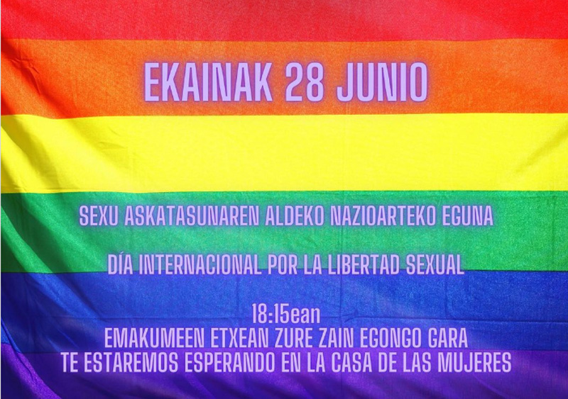 Ya está aquí el 28 de junio, día internacional por la libertad sexual: día del Orgullo, y el Bloke de la Casa te convoca a salir todas juntas con la Batukada hasta el Boulevard para luego integrarnos en la convocatoria general y tomar las calles de Donostia con nuestras reivindicaciones.