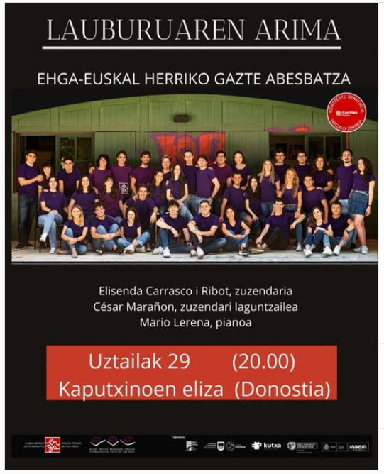 Concierto de EUSKAL HERRIKO GAZTE ABEZBATZA a favor de Caritas en la Iglesia de capuchinos de Donostia