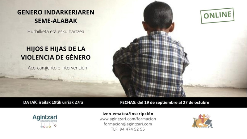 Agintzari Elkarteak irailaren 19tik urriaren 27ra ospatuko den "Genero Indarkeriaren Seme-Alabak: Hurbilketa eta esku hartzea" ikastaroa antolatu du.
