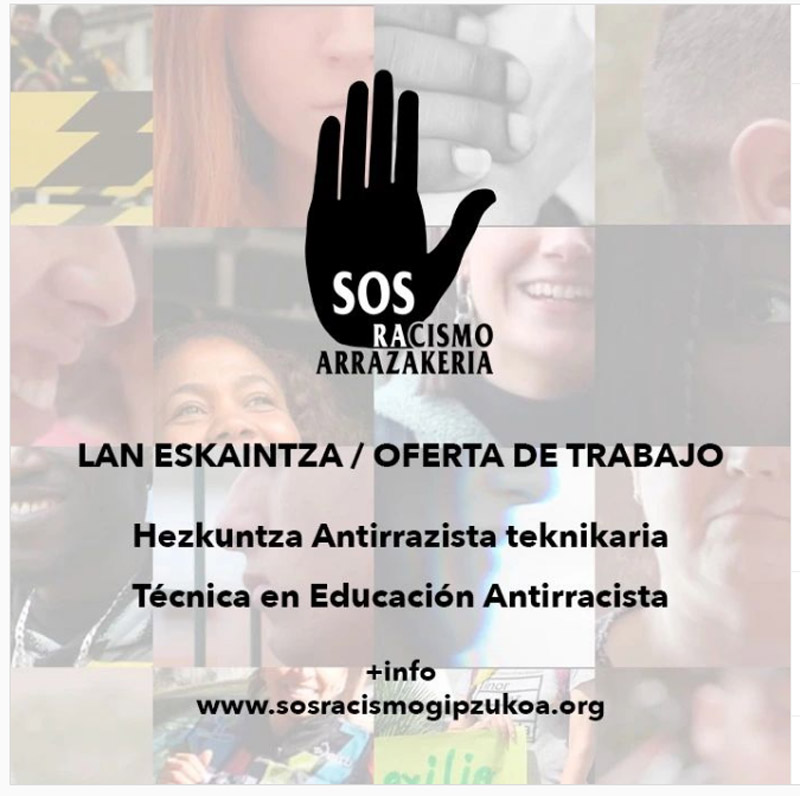 ¡OFERTA DE EMPLEO! - En SOS Racismo Gipuzkoa buscamos a una técnica en Educación Antirracista - Plazo abierto hasta el 15 de septiembre.