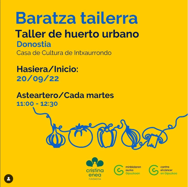 Tailerra asteartero egingo da #Intxaurrondo-ko Kultur Etxeko baratzean (Felix Gabilondo enparantza).