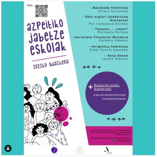 Badatoz Azpeitiko Jabetze Eskolak. Emakumeontzako ahalduntzerako, beren burua eta bizitzaren jabe izateko, maila pertsonal eta kolektiboan indartzeko, elkarrekin ikasi, errealitateari ikuspegi feminista batetik begiratzeko eta parte-hartze soziopolitikoa handitzeko guneak.