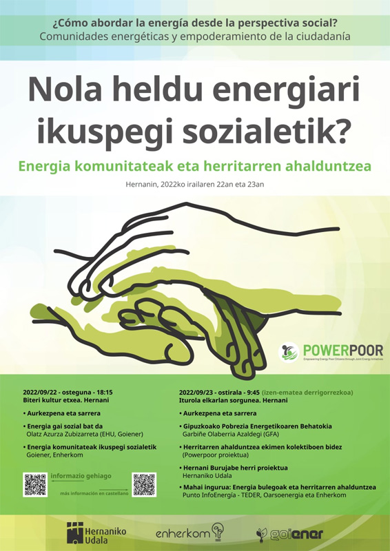 Powerpoor proiektu europarraren baitan antolatu ditugu, Hernaniko Udalaren eta Enherkom-en, bertako energia komunitatearen laguntzarekin.