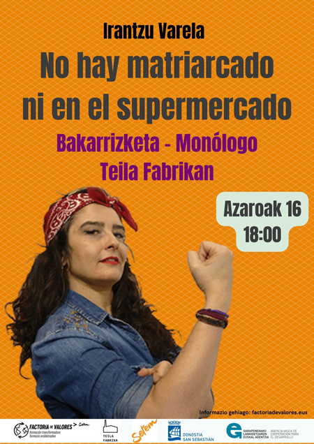 De la mano de la asociación Setem Hego Haizea la periodista y feminista Irantzu Varela ofrece el monólogo "No hay matriarcado ni en el supermercado".