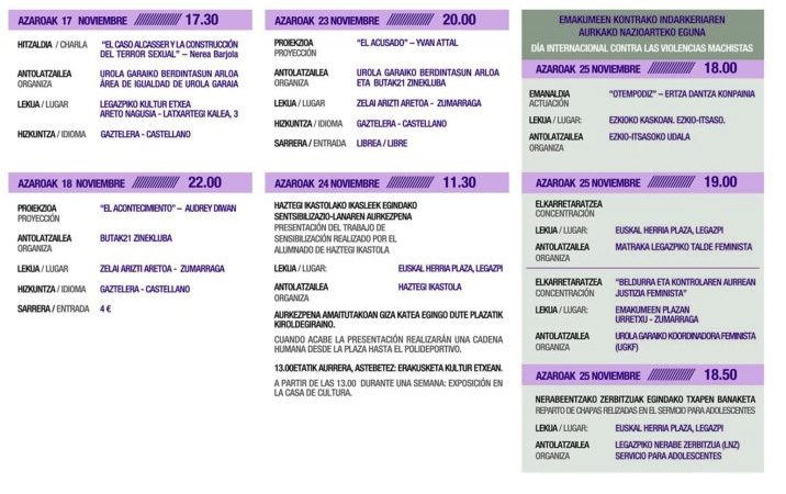 Programa de actividades organizadas en Urola Garaia en torno al 25 de noviembre, Día Internacional de la Eliminación de la Violencia Contra las Mujeres.