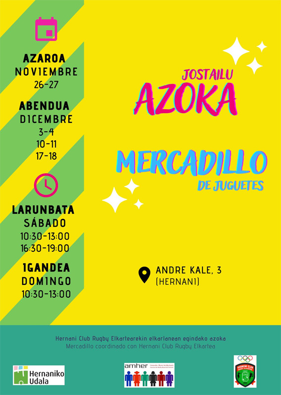 Amher SOS Arrazakeria elkarteak, Hernani Club de Rugby elkartearekin elkarlanean, jostailuak jaso eta azoka antolatu du herritarrontzat. Azoka abenduko asteburuetan irekiko da (abenduak 18 arte).