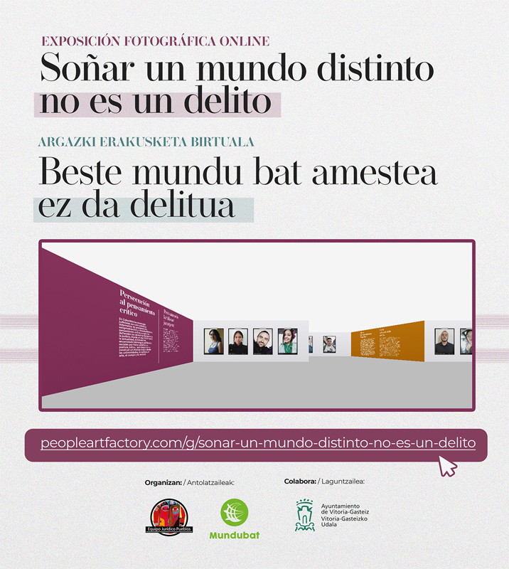 La Fundación Mundubat y Equipo Jurídico Pueblos presentan la exposición fotográfica virtual "Soñar un mundo distinto no es un delito".