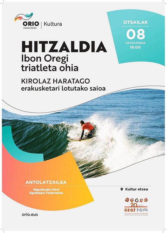 "Orio Denontzat" ekimenaren baitan, Gipuzkoako Kirol Egokituen Federazioaren (GKEF) eskutik Ibon Oregi triatleta ohiaren hitzaldia izango dugu datorren otsailaren 8an.