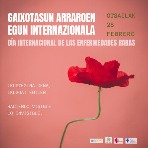 Febrero es el mes de las enfermedades raras, finalizando este con el Día Internacional de las Enfermedades Raras el 28 de febrero. En Euskadi somos muchas las asociaciones que nos dedicamos a dar visibilidad y a ayudar a familias afectadas por estas patologías. Aprovechando esta fecha señalada estamos llevando a cabo una campaña bajo el lema "Haciendo visible, lo invisible".
