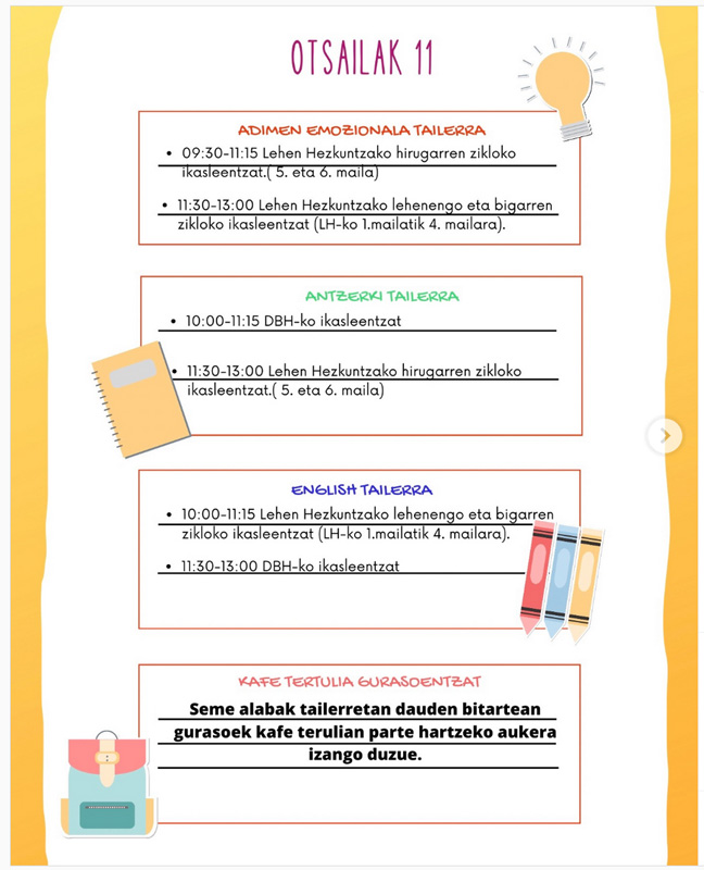 Bigarren hiruhilekoari dagozkion Dislegi tailerren plangintzarekin jarraituz, zuen interesekoak eta atseginak izatea espero dugun tailer batzuk aurkezten dizkizuegu. Bigarren tailer hau otsailaren 11n, larunbata, egingo dugu.