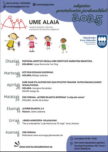 Ume Alaia Adopzio-Familien Elkarteak 2025. Urterako antolatu dituen "Adopzioa" Prestakuntza Jardunaldiak.