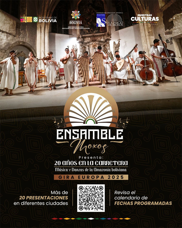 Espainiako, Frantziako eta Alemaniako herrialdetan "20 años en la carretera" bira egiten ari den Ensamble Moxos Bolivia indigenaren, kultura anitzekoaren eta etnia anitzekoaren arte-adierazle nagusietako bat da.