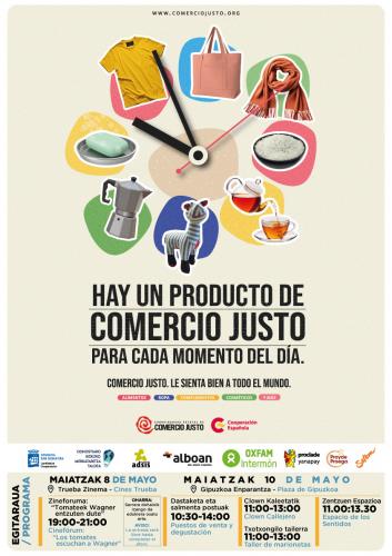 Aurten, “Bidezko Merkataritzako produktu bat dago eguneko une bakoitzerako” lelopean, Donostiako Bidezko Merkataritzako Taldeak (Adsis Fundazioa, Alboan, Oxfam-Intermon, Proclade Yanapay, Proyde-Proega eta Setem) bat egiten du jai-ospakizun horrekin.